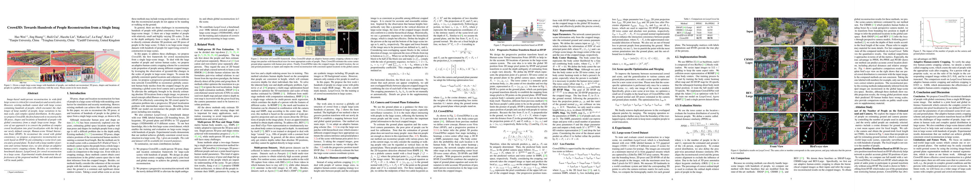 Hao Wen, Jing Huang, Huili Cui, Haozhe Lin, Yu-Kun Lai, Lu Fang, Kun Li. "Crowd3D: Towards Hundreds of People Reconstruction from a Single Image". In Proc. CVPR, 20233, pp. 8937-8946.