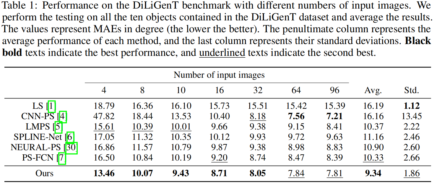 Table 1. Quantitative comparsion on the DiLiGenT benchmark.