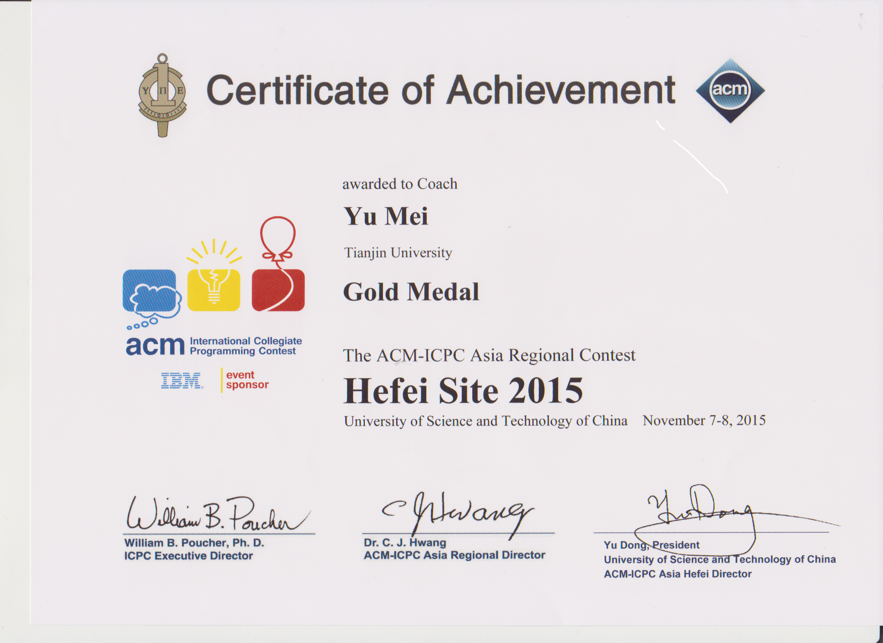 | 中国大学生程序设计竞赛 | 金奖 | 3 |
