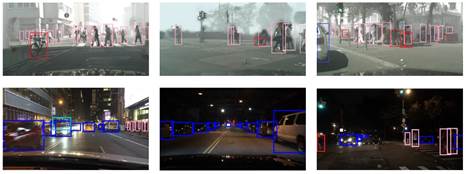 图2雾天和夜间的域自适应目标检测结果