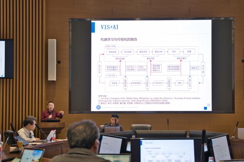 浙江大学陈为教授在报告中指出机器学习与可视化的流程存在一定的相似性,两者均是对数据进行转化,一方面可视化可以辅助研究人员构建机器学习模型即VIS for AI,另一方面机器学习也可以辅助可视化的数据转换、可视映射及用户交互的过程,即AI for VIS,将机器学习与可视化深度耦合是当前的研究热点。