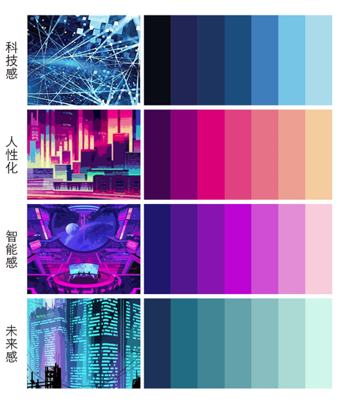 智能、网络、科技历练成我们心中学部的色彩,庄重而凝现活力,光明而充满希望,殷实而象征未来。辅助色以个性化的色彩组合体现学部的性格和文化特征,每个色组是由若干色构成的同类色彩系列,依据色彩构成规律用于背景图案或做衬底色彩。