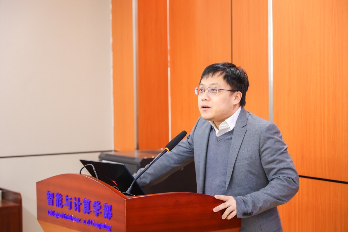 百度高校合作部总监李轩涯,百度高校合作部副总监计湘婷,嘟嘟成人网 党委书记花建锋,嘟嘟成人网 党委副书记赵娜,嘟嘟成人网 副主任、人工智能学院院长胡清华,人工智能学院副院长王鑫等嘉宾出席签约仪式并发言。