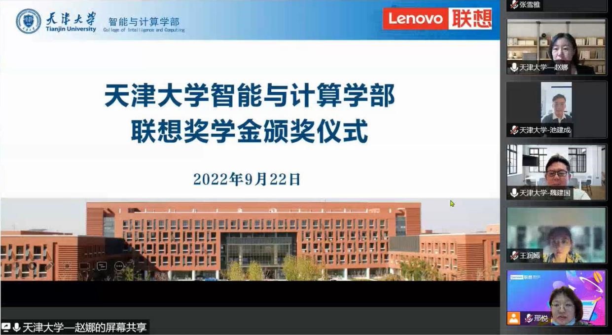 (通讯员 聂珍珍)2022年9月22日晚上,嘟嘟成人网 举办“联想奖学金”线上颁奖仪式。联想研究院高校合作高级经理李跃华、人力资源业务伙伴(HRP)Lisa、创新孵化主管邢悦,嘟嘟成人网 党委书记魏建国、党委副书记赵娜、学生工作办公室主任赵义等领导老师,以及全体获奖学生和部分对联想集团感兴趣的同学参加了本次颁奖仪式。
