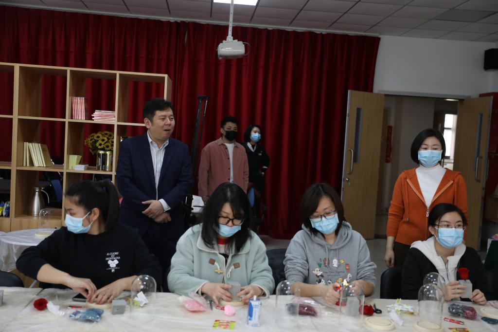 学部教师一边交流,一边制作,在其乐融融的气氛中,或合作、或独自地完成精致的永生花作品。大家纷纷拍照留念,在微信朋友圈分享自己作品和愉悦的心情,度过了一个有意义的节日。