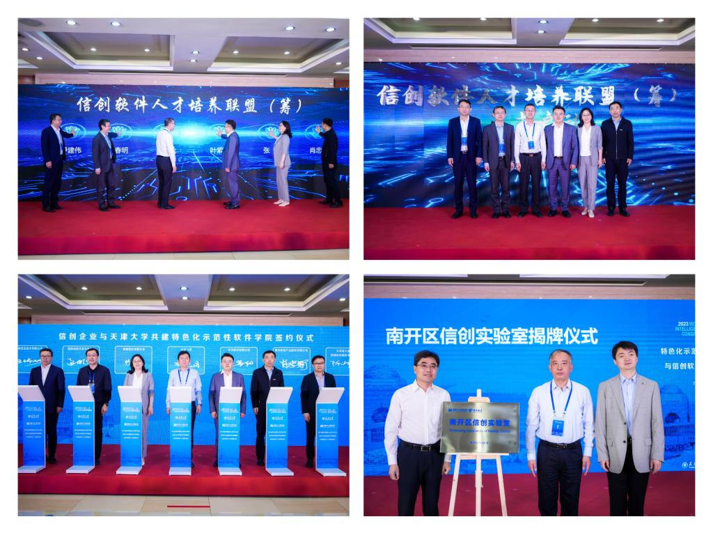 华为技术有限公司、曙光信息产业股份有限公司、麒麟软件有限公司、飞腾信息技术有限公司、国家超级计算天津中心、天津南大通用数据技术股份有限公司等六家信创企业与嘟嘟成人网 签署了进一步共建嘟嘟成人网 特色化示范性软件学院的协议,在多年深入合作的基础上拓宽合作范围,优化校企合作模式,为信创领域核心技术协同攻关、高质量信创软件人才培养提供更为坚实有效的支撑。天津市南开区人民政府联合嘟嘟成人网 、中国电信集团天津分公司签署了共建“南开区信创实验室”的合作协议并揭牌,该实验室将为嘟嘟成人网 特色化示范性软件学院人才培养提供创新创业、实习实训的资源与环境。