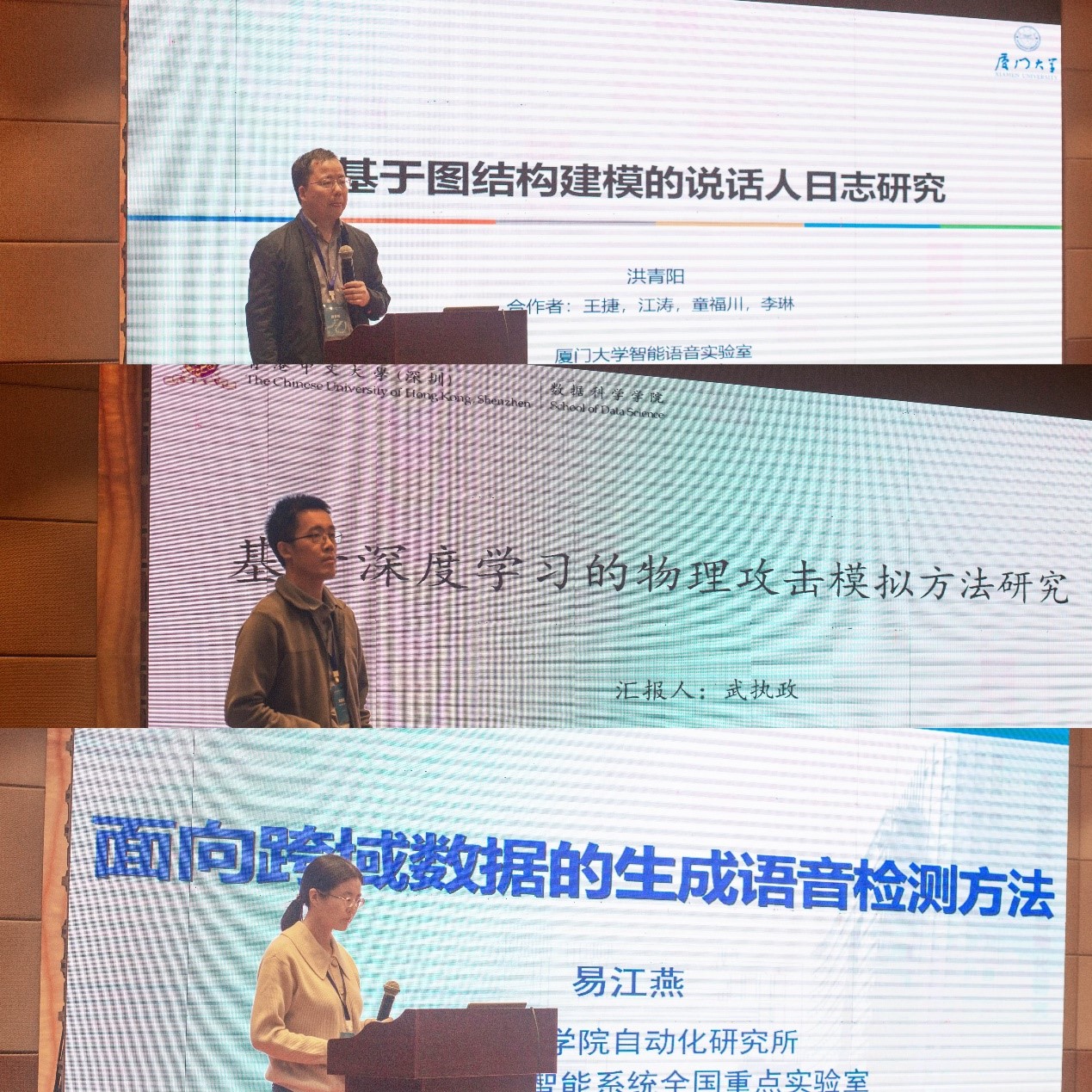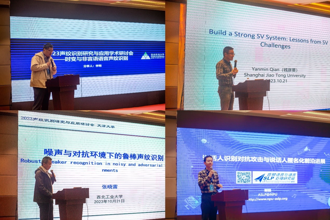 清华大学副研究员何亮、中国科学院声学研究所研究员张鹏远、清华大学副研究员王东、中国科学技术大学副教授杜俊、昆山杜克大学副教授李明、上海交通大学教授钱彦旻、西北工业大学教授张晓雷、西北工业大学教授谢磊、厦门大学副教授洪青阳、香港中文大学(深圳)副教授武执政、中国科学院自动化研究所副研究员易江燕分别做了特邀报告。