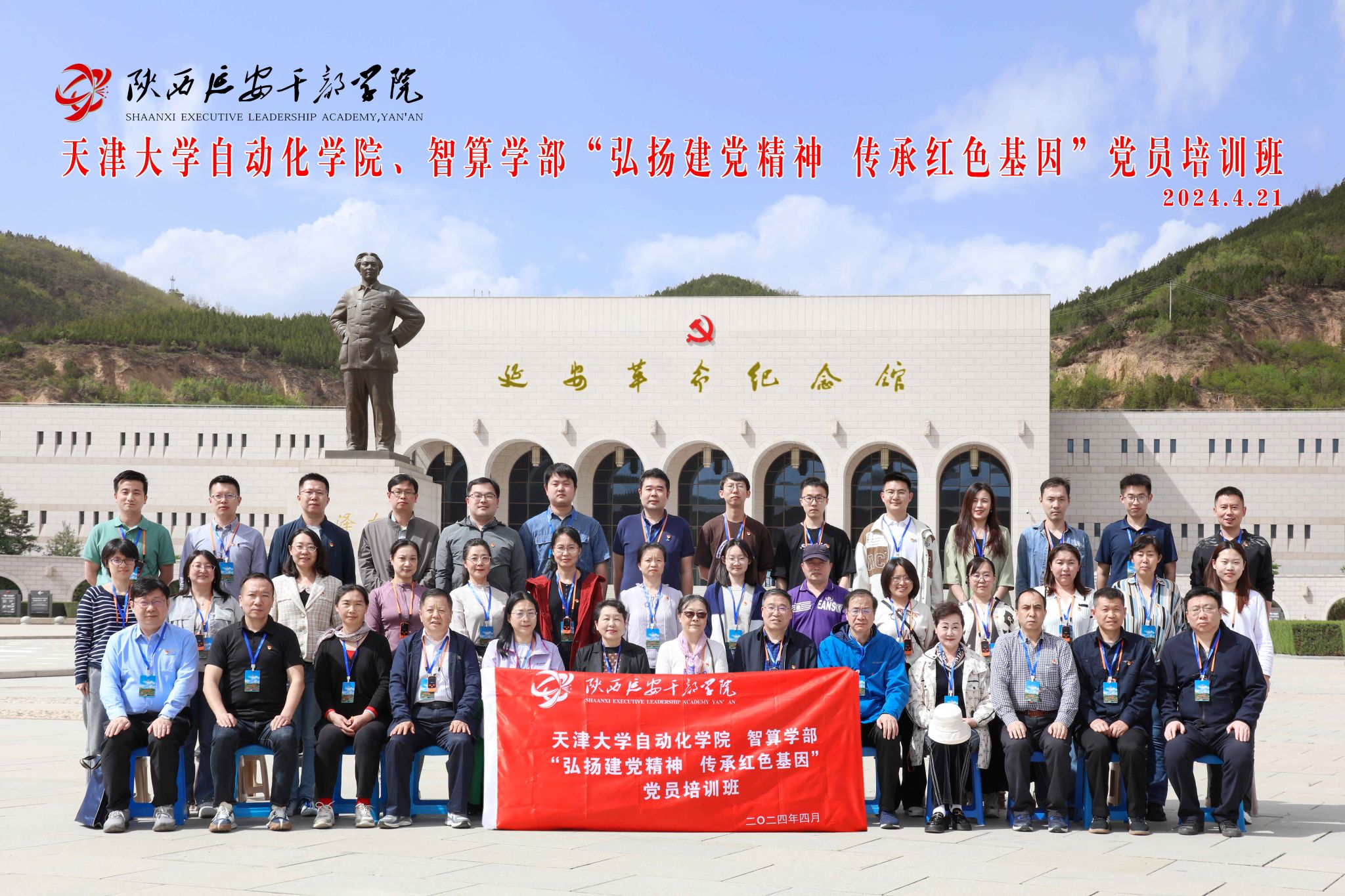 为学习贯彻落实习近平新时代中国特色社会主义思想,巩固主题教育成果,2024年4月20日-24日,智算学部和自动化学院党委在延安干部培训学院组织开展“弘扬建党精神,传承红色基因”党员教育培训,通过学习延安精神,滋养初心、淬炼灵魂,促进党员把学习党的创新理论和党史基本内容、党的历史结论、党的历史经验、伟大建党精神贯通起来,把党史、党纪学习同中心工作结合起来,进一步强化纪律意识、加强自我约束、提高免疫能力,增强政治定力、纪律定力、道德定力、抵腐定力,营造风清气正的学院氛围,带头推动中心工作开展。