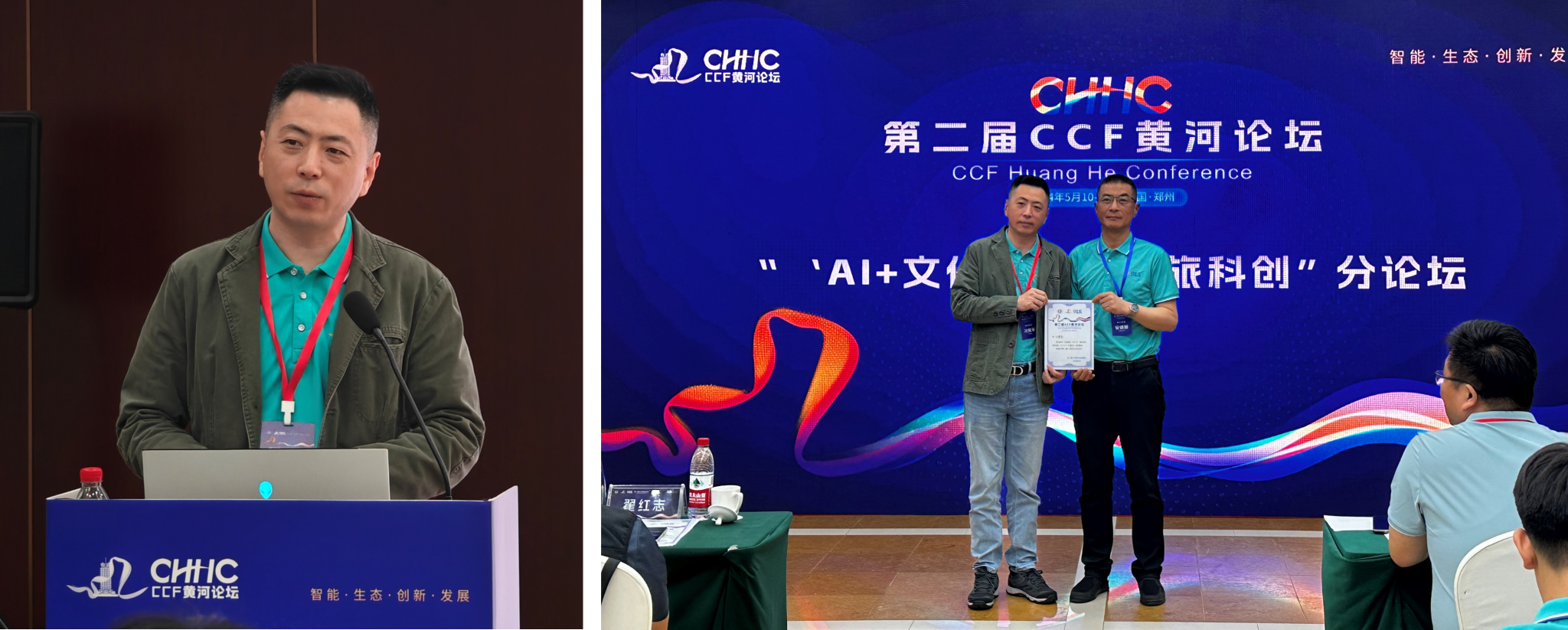 (通讯员 张乾)5月11日,第二届CCF黄河论坛(CHHC 2024)“AI+文化”数字文旅科创论坛在郑州市黄河迎宾馆召开。该论坛由CCF天津和CCF兰州共同承办,嘟嘟成人网 副主任冯伟教授、甘肃政法大学网络空间学院院长安德智教授担任论坛主席。河南博物院副院长翟红志、复旦大学计算机科学技术学院教授金城、浙江大学文化遗产研究院副院长刁常宇、天津恒达文博科技股份有限公司副总经理李世杰、河南博物院文创办兼社会服务部主任宋华受邀参加论坛,并做主题报告分享。