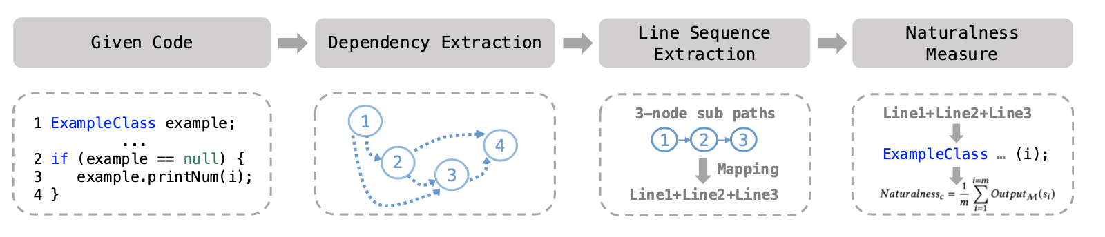 该项成果面向代码自然性开展研究,这也是大语言模型时代下程序代码的重要属性。代码自然性反映了代码重复性和可预测性的特征,对于各种代码相关任务具有重要价值。然而,现有方法忽略了代码之间的深层语义关系(如程序依赖),无法精确衡量代码自然性。该项成果首次通过分析代码中丰富的依赖信息,提高代码自然性衡量的精度,从而提升基于代码自然性的下游任务效果,包括缺陷代码静态识别、代码大模型训练数据清洗等。此外,与现有的RoPE、分层注意力机制等学习非线性上下文的方式不同,该方法通过静态程序分析提取非线性上下文,为大语言模型时代的非线性上下文利用提供了新的选择。