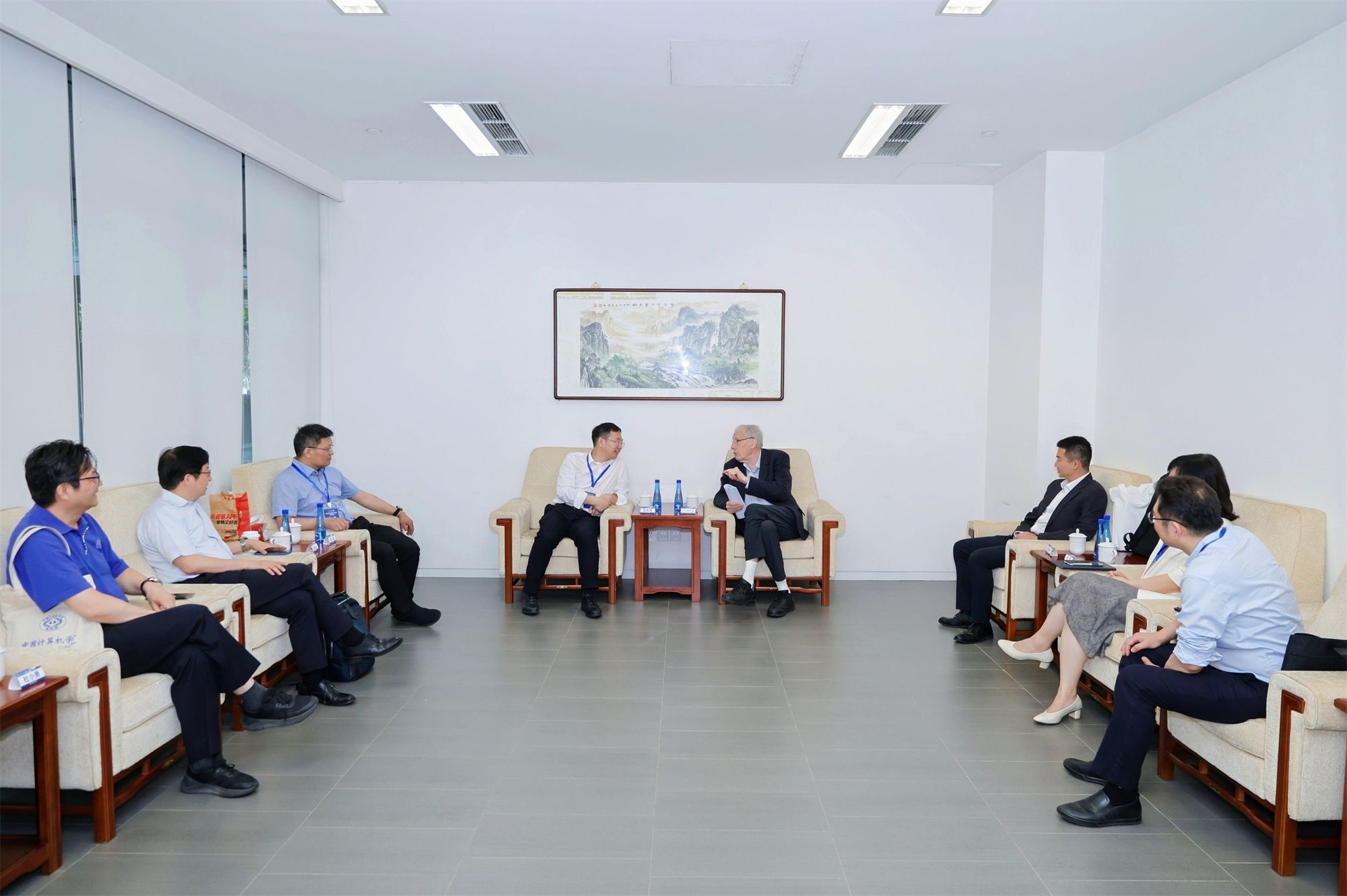 会前,嘟嘟成人网 党委常委副校长王天友会与John Hopcroft教授等主要嘉宾进行了座谈,教务处处长何芳、嘟嘟成人网 党委书记魏建国陪同座谈。