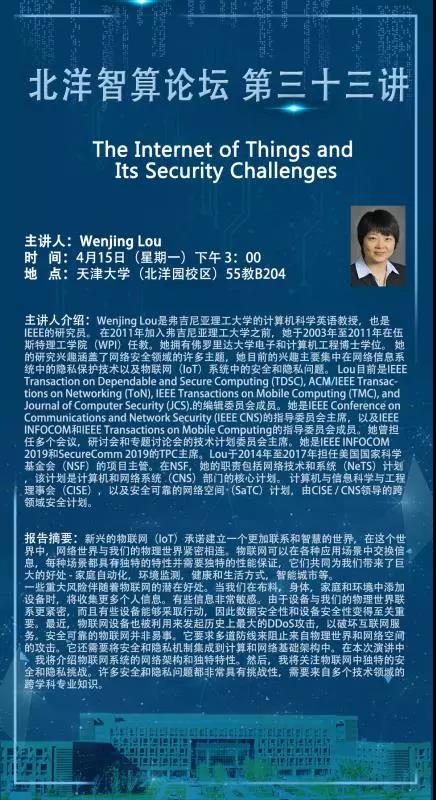 北洋智算论坛 | 第三十三讲预告:物联网及其安全挑战