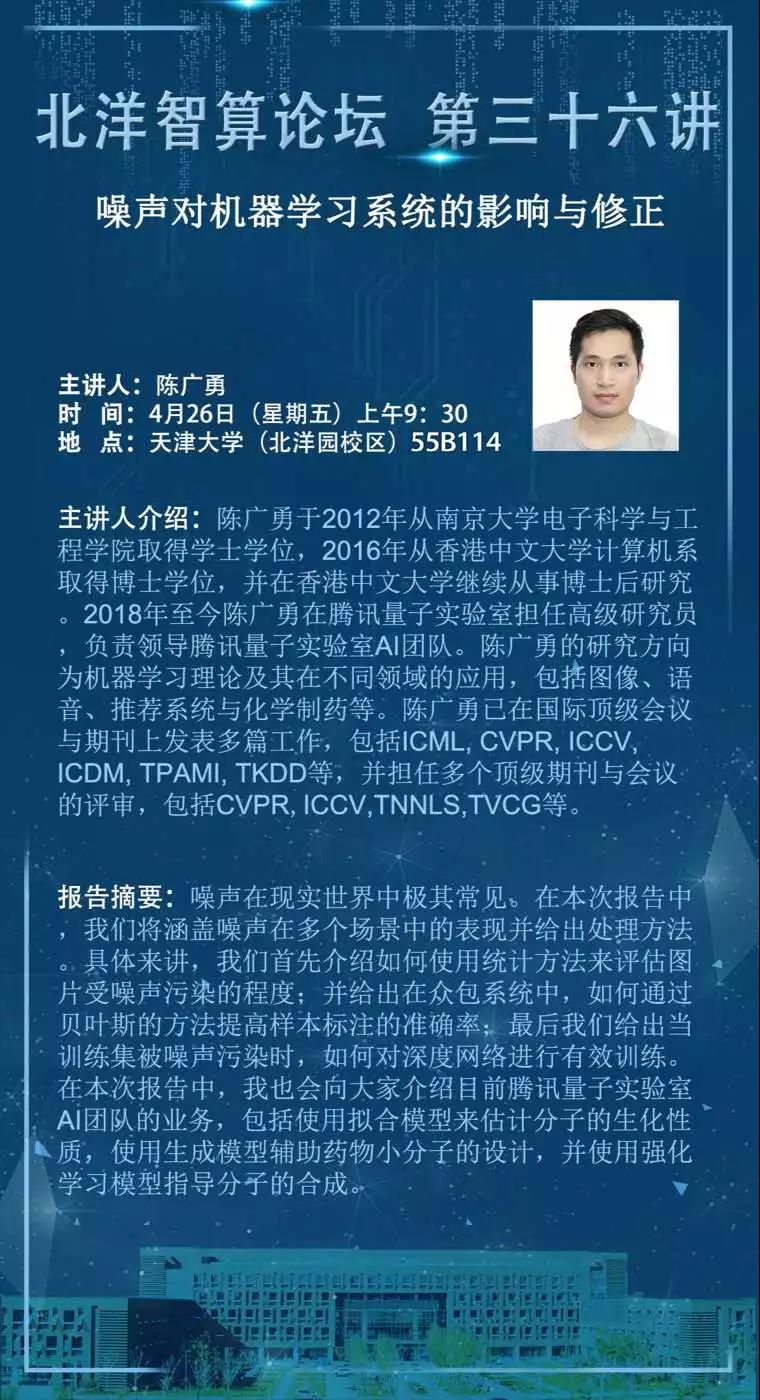 北洋智算论坛|第三十六讲预告:噪声对机器学习系统的影响与修正