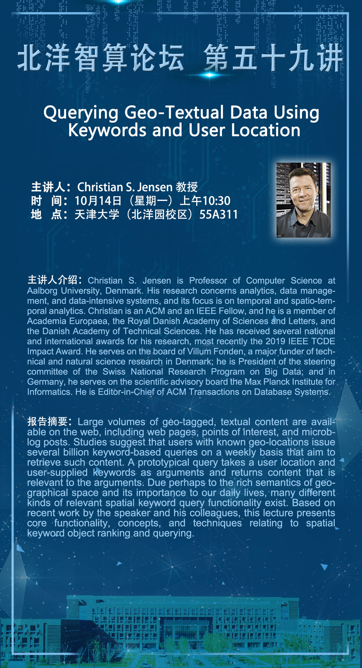 北洋智算论坛 | Querying Geo-Textual Data Using Keywords and User Location