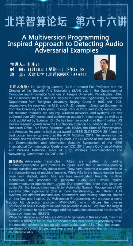 北洋智算论坛 | A Multiversion Programming Inspired Approach to Detecting Audio Adversarial Examples
