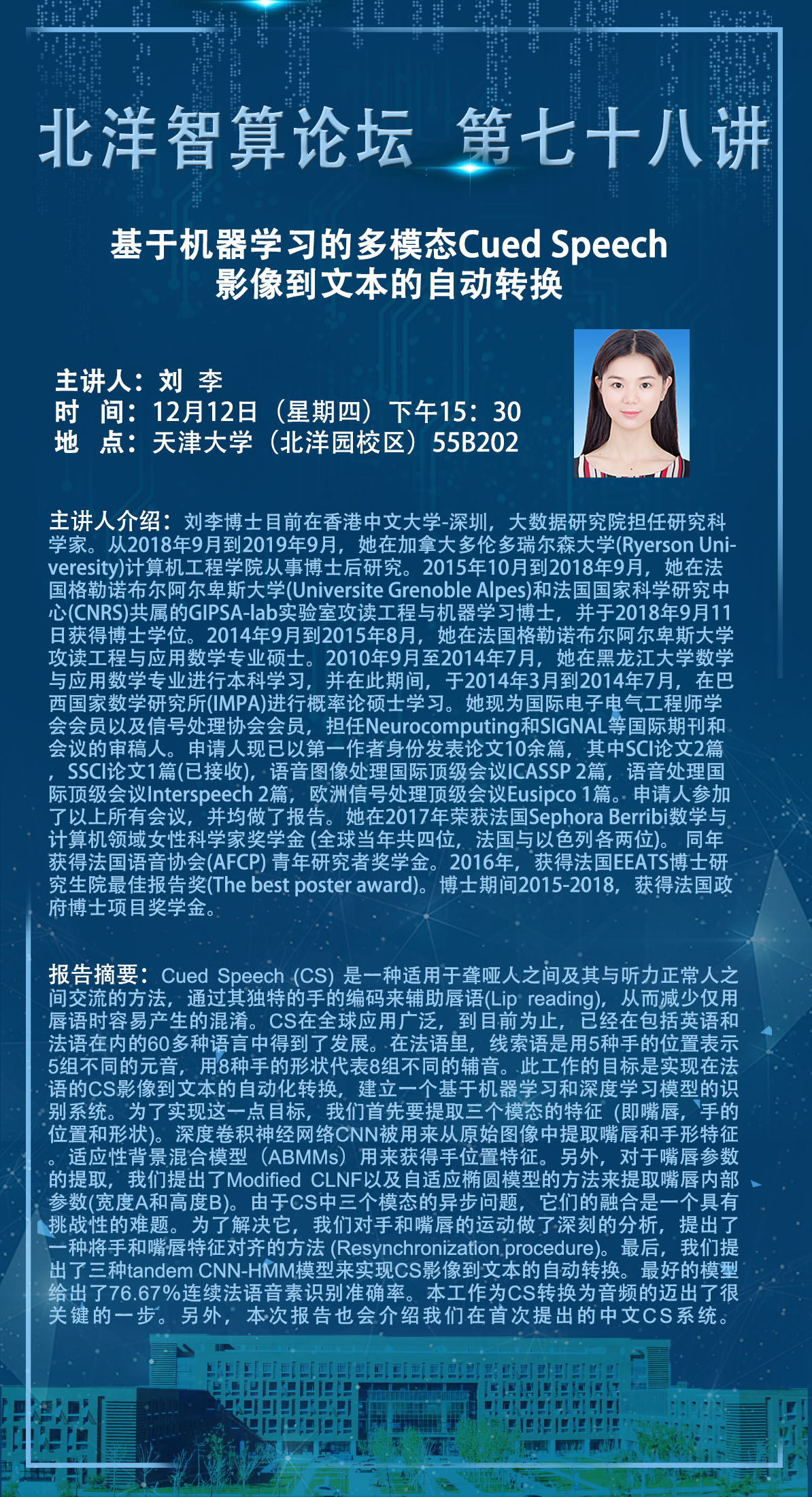北洋智算论坛 | 基于机器学习的多模态Cued Speech影像到文本的自动转换