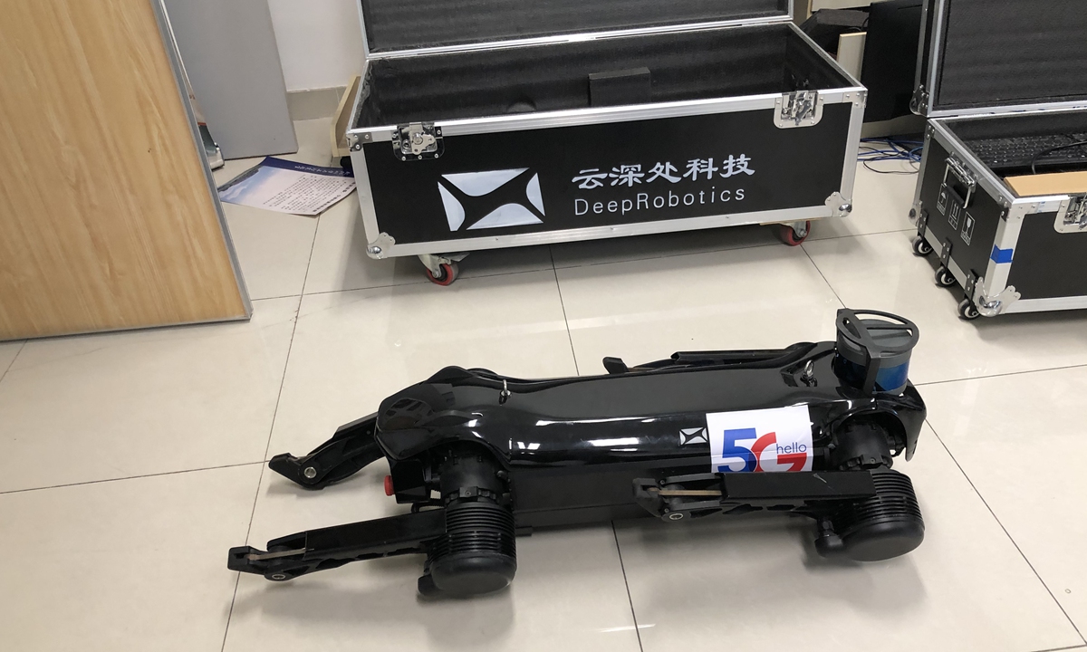 A robo-dog is seen crouching on the ground. Photo: GT/Chu Daye