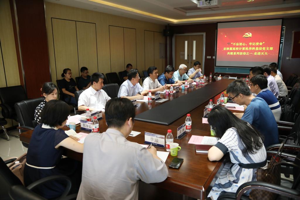 协同谋发展,支部挺在前。中国共产党人的初心和使命,是为中国人民谋幸福,为中华民族谋复兴。高校党支部建设就是要以教书育人、传道授业的教育初心为出发点,积极探索扎实有效的党建工作新途径,让支部成为堡垒,让党员成为旗帜。京津冀高校计算机学科基层党支部共建系列活动将深刻把握“不忘初心、牢记使命”的主题,为党建交流、院系合作搭建广阔平台,期待今后和各大高校兄弟院系展开进一步的交流学习,在新的机遇和挑战面前、在抓实支部的进程中携手并进。