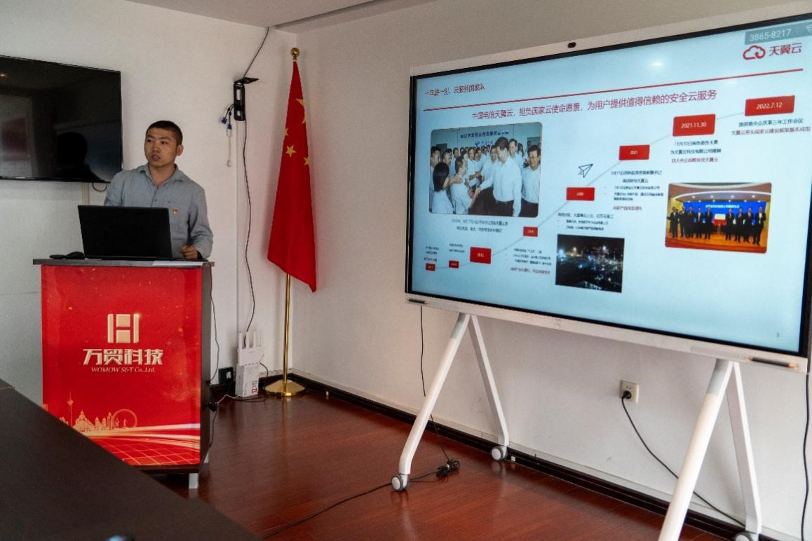 随后,万贸科技有限公司副总经理王宝娜介绍了公司主要业务及发展方向,公司业务范围涉及信息传输、软件和信息技术服务、航空测绘与检测、摄影测量与遥感、地理信息系统工程、电力工程、工矿工程、广播电视、影视与传播、文博交互展示以及广告设计与制作等领域。
