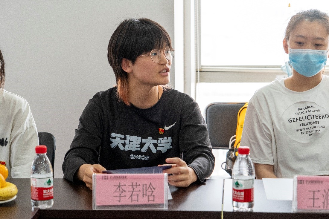 座谈交流中,动画专业学生党员李若晗同学介绍了她们参与过的敦煌数字化文创产品设计、文博产品交互展示设计等方面的工作,并表示希望与万贸科技和淇河传媒展开数字藏品的文创设计研发等合作,以锻炼综合创新与知识拓展能力。